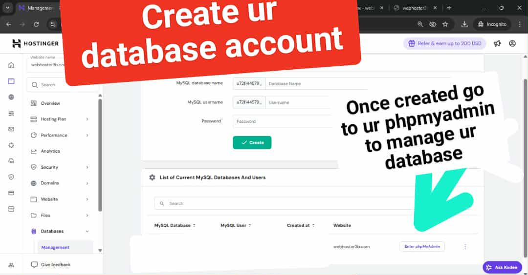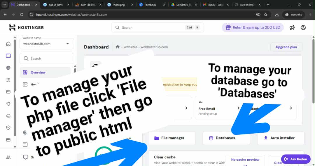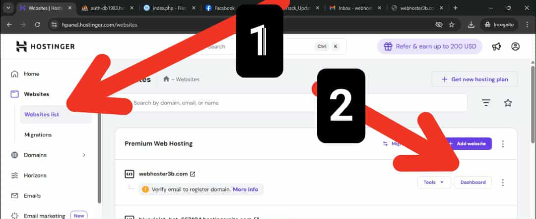 5. Go to WEBSITE, ....... then go to the dashboard of https://webhoster3b.com/